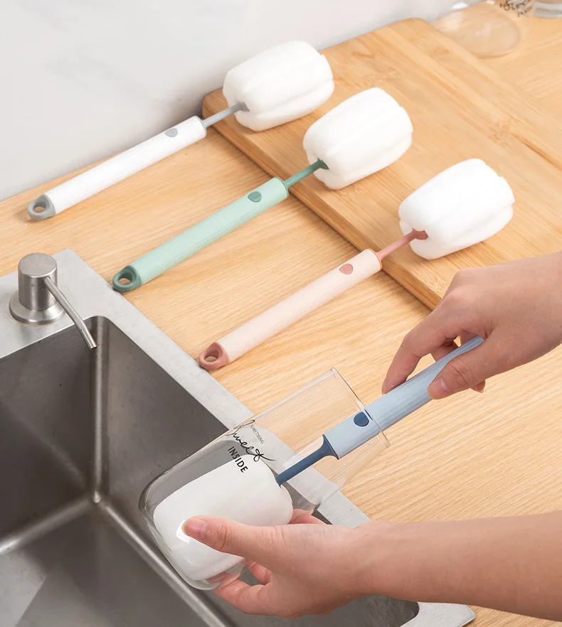 새로운 북유럽 스타일 컵 브러시 긴 손잡이 스폰지 컵 브러시 분리 및 교체 가능한 헤드 아기 병 및 보온병 컵 청소 브러시