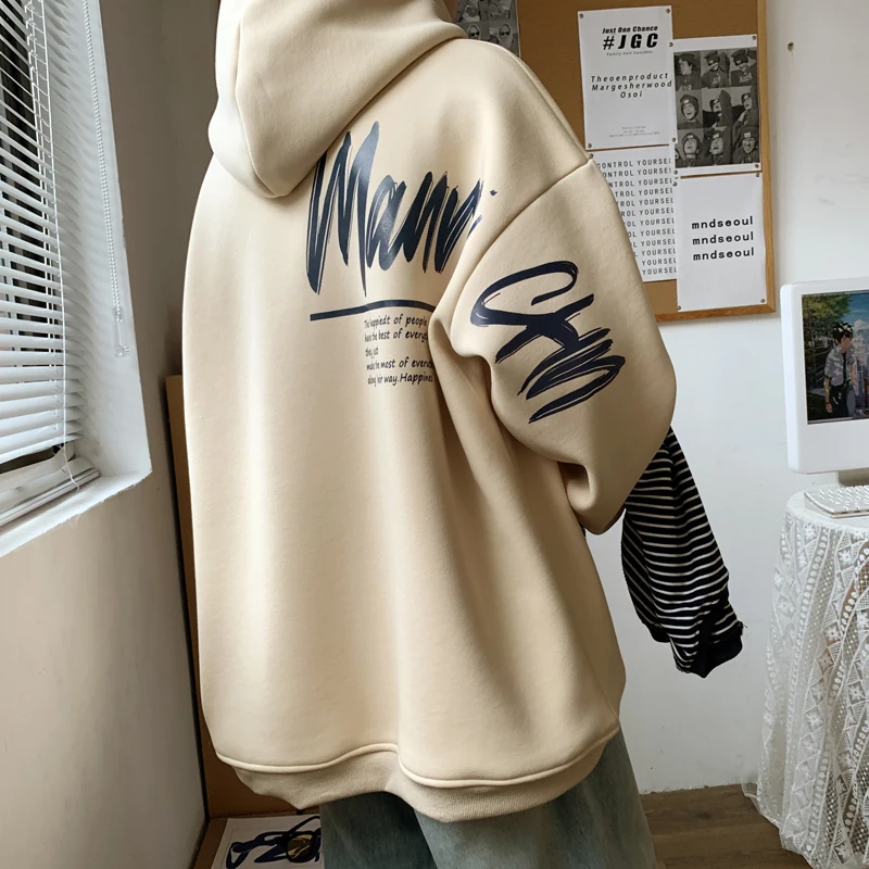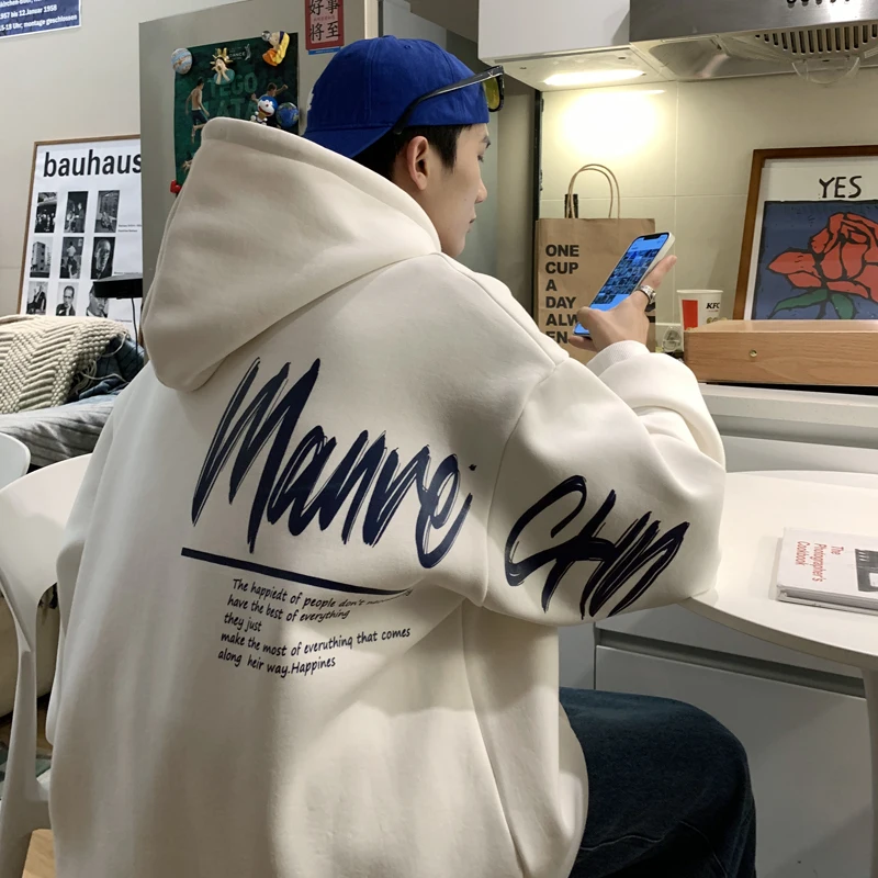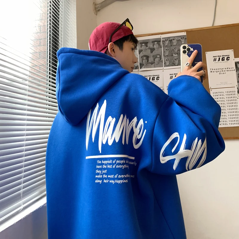 기모 후드티 청소년 가을겨울 패션 기모 후드 남성용 대형 사이즈 트렌디 아메리칸 스타일 트렌디 후드티 스웨트셔츠 후드티 - TopDealBox