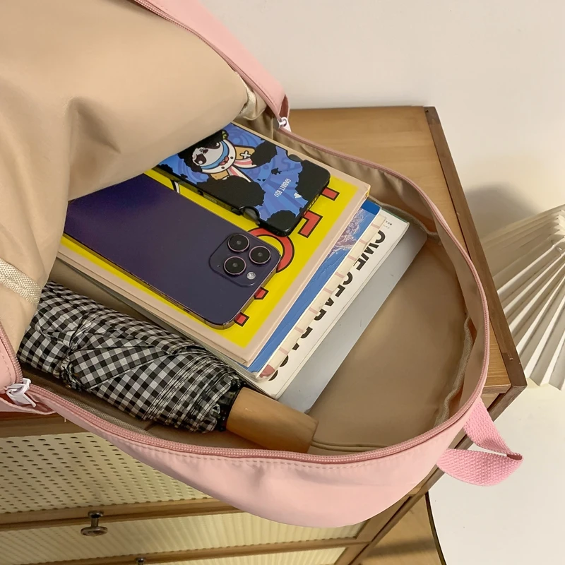 대용량 학교 배낭 부드러운 지퍼 솔리드 컬러 십대 소녀 캐주얼 데이 팟 가방 학생 공급 - TopDealBox