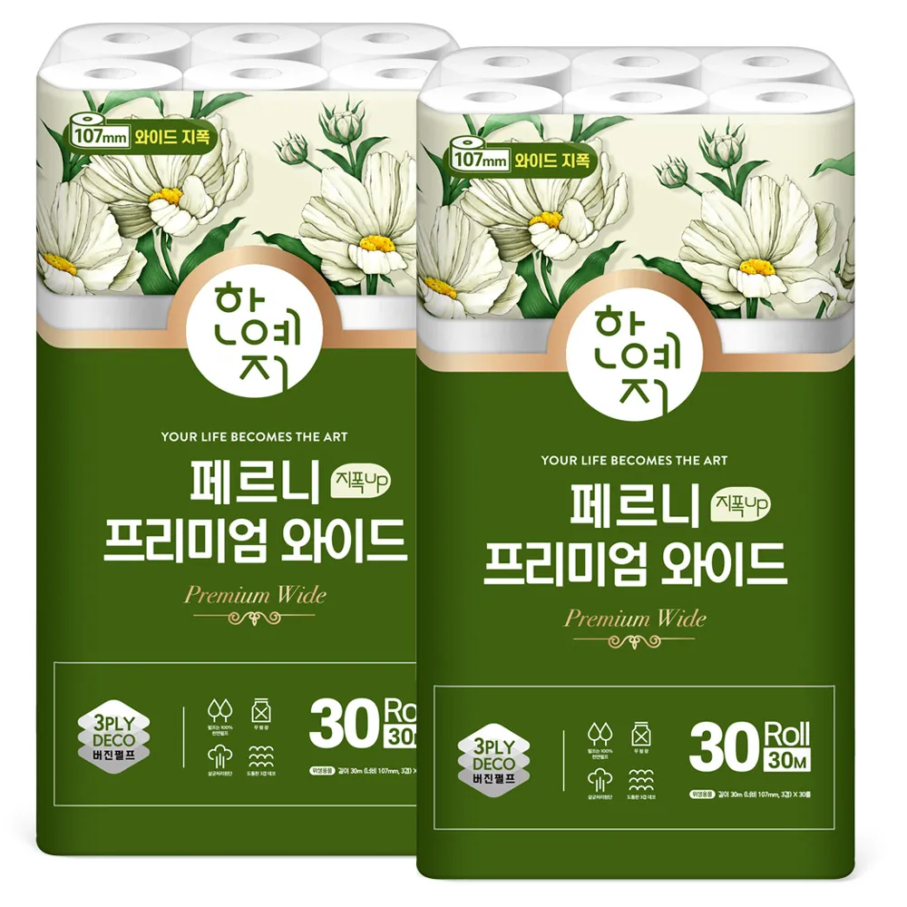 β†‘ν•œμ˜ˆμ§€ 페λ₯΄λ‹ˆ 프리미엄 μ™€μ΄λ“œ[지폭 107mm] μ²œμ—°νŽ„ν”„ 3κ²Ή ν™”μž₯μ§€ 30m 30λ‘€ 2팩 - TopDealBox