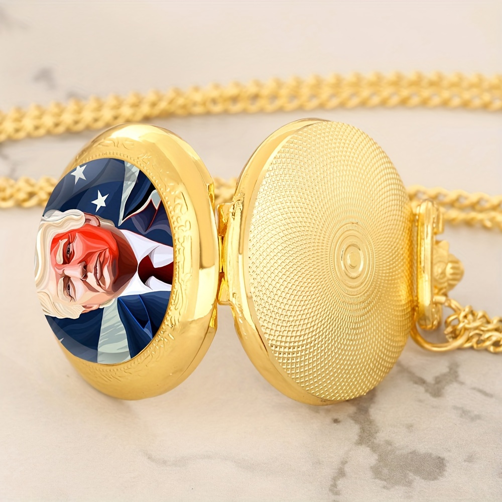 럭셔리 골드 컬러 트럼프 2024 선거 기념 회중시계 - 석영, 투쟁 대통령, 빈티지 독특한 목걸이 기념품 선물