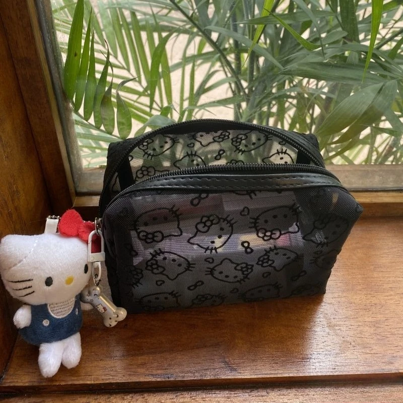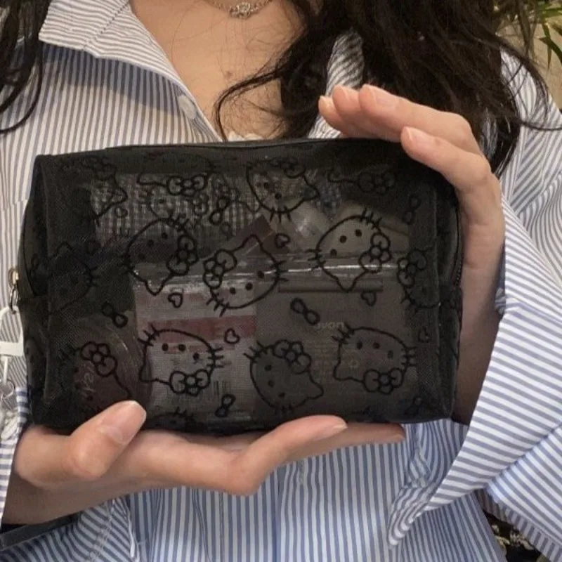 2026년 신제품 키티 메쉬 메이크업 가방 귀여운 고양이 화장품 보관 가방 오염 방지 대용량 휴대용 가방 - TopDealBox