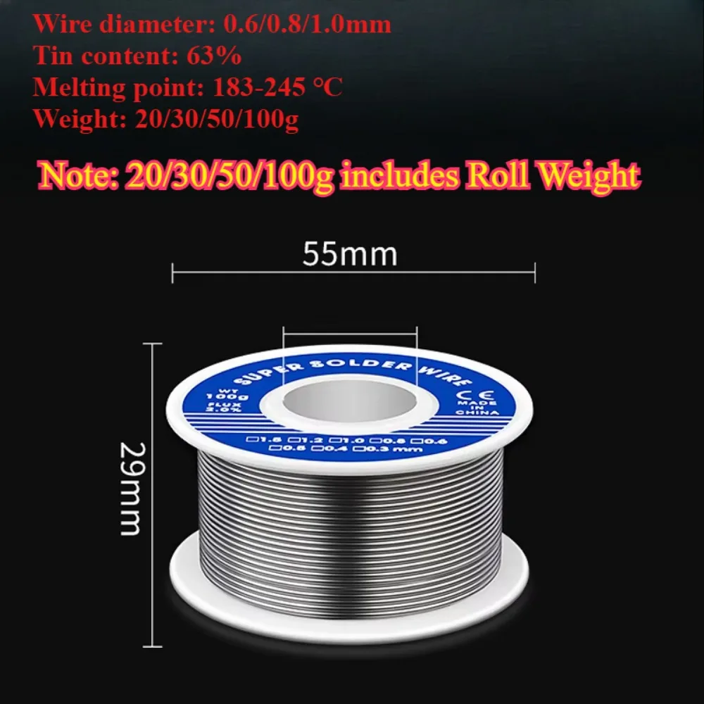 ↑20/30/50/100g μ „μž λ‚©λ•œ 와이어 0.6/0.8/1.0mm 솔더 와이어 λ‘œμ§„ μ½”μ–΄ 주석 λ‹€λͺ©μ  μš©μ ‘ 와이어 ν”ŒλŸ­μŠ€ μ²  와이어 릴 - TopDealBox