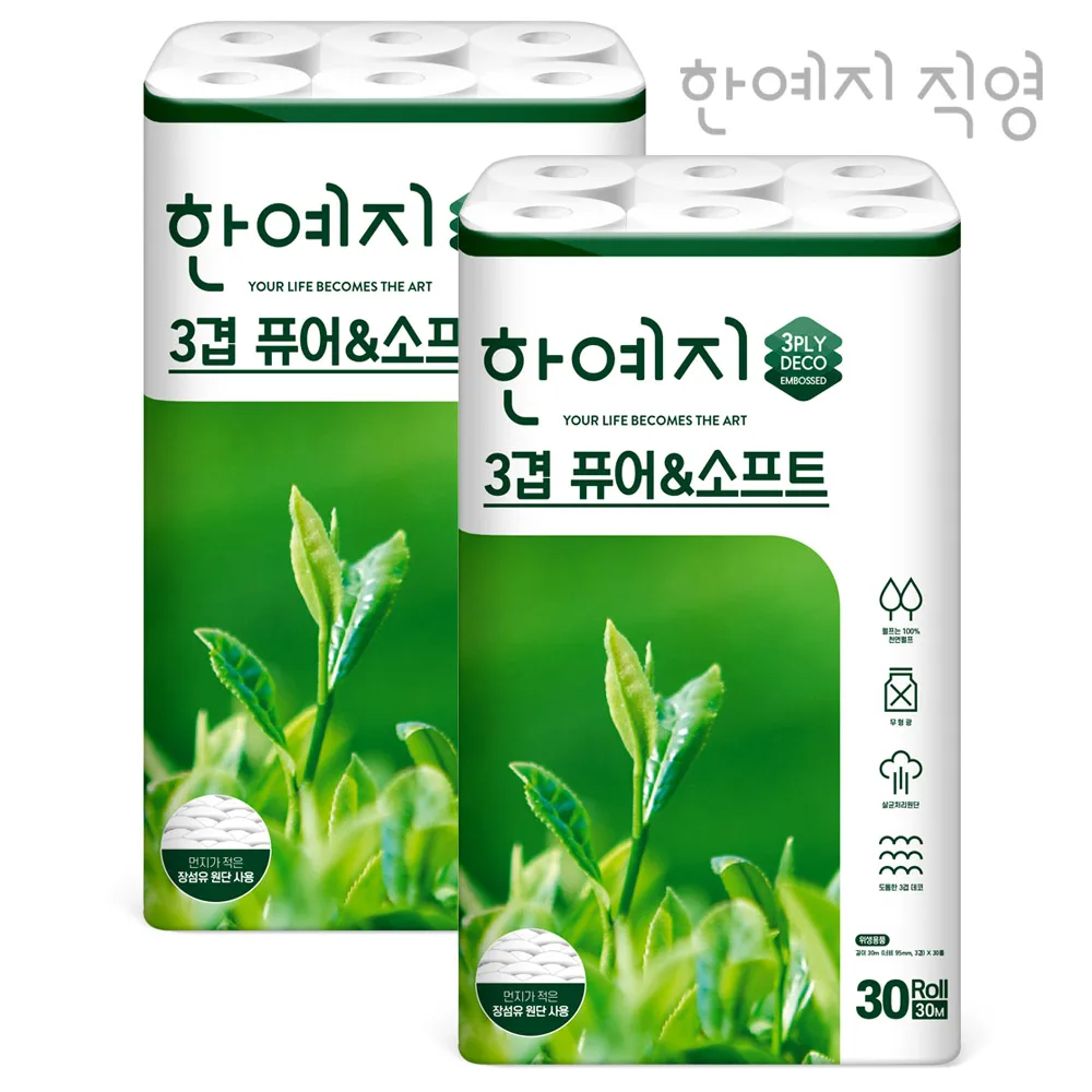 β†‘ν•œμ˜ˆμ§€ ν“¨μ–΄μ•€μ†Œν”„νŠΈ μ²œμ—°νŽ„ν”„ ν™”μž₯μ§€ 30m 30λ‘€ 2팩 - TopDealBox