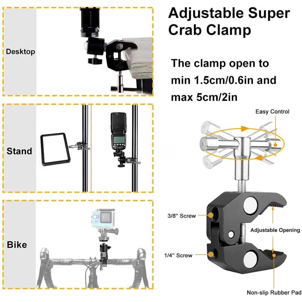 โ†‘360๋„ ํšŒ์ „ ๊ฐ€๋Šฅํ•œ ์Šˆํผ ํด๋žจํ”„ ์นด๋ฉ”๋ผ ๋งˆ์šดํŠธ ยฐ ๋ฏธ๋‹ˆ ๋ณผ ํ—ค๋“œ ํ€ต ๋ฆด๋ฆฌ์ฆˆ 1/4 ๋‚˜์‚ฌ ํด๋ฆฝ DSLR ๊ณ ํ”„๋กœ ์‚ผ๊ฐ๋Œ€ ๋ธŒ๋ž˜ํ‚ท ํด๋ฆฝ ์‚ฌ์ง„ ์ดฌ์˜์šฉ