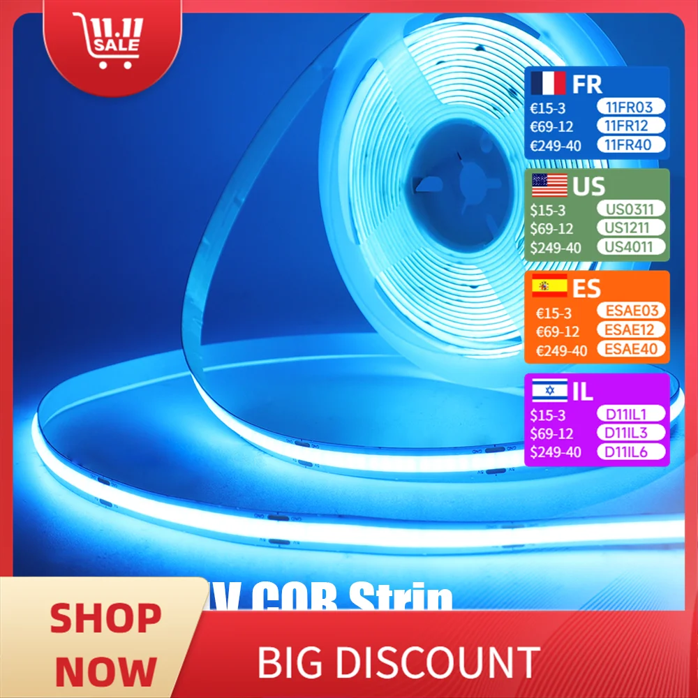 ♡Quick viewIP68 방수 COB 스트립 12V 24V 320Leds/M RA90 3000K 4000K 6000K 홈 정원 장식 유연한 리본 로프 LED 빛 1M 10M 20M3420 KRWKRW 3420Hot★★★★★★4.8