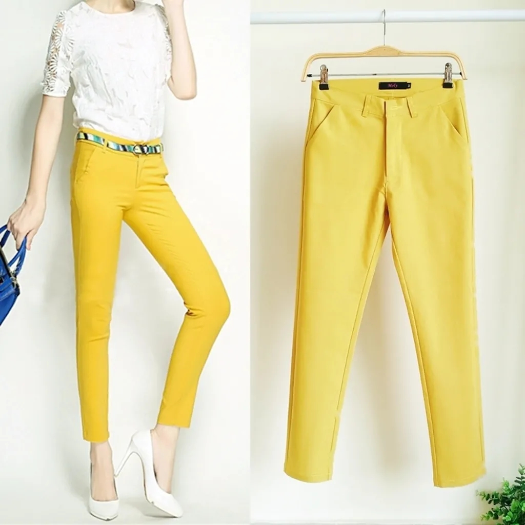 패션 발목 길이 정장 바지 사무실 레이디 연필 Pantalones 8 색 봄 높은 허리 여성 카프리 기본 슬림 작업 바지