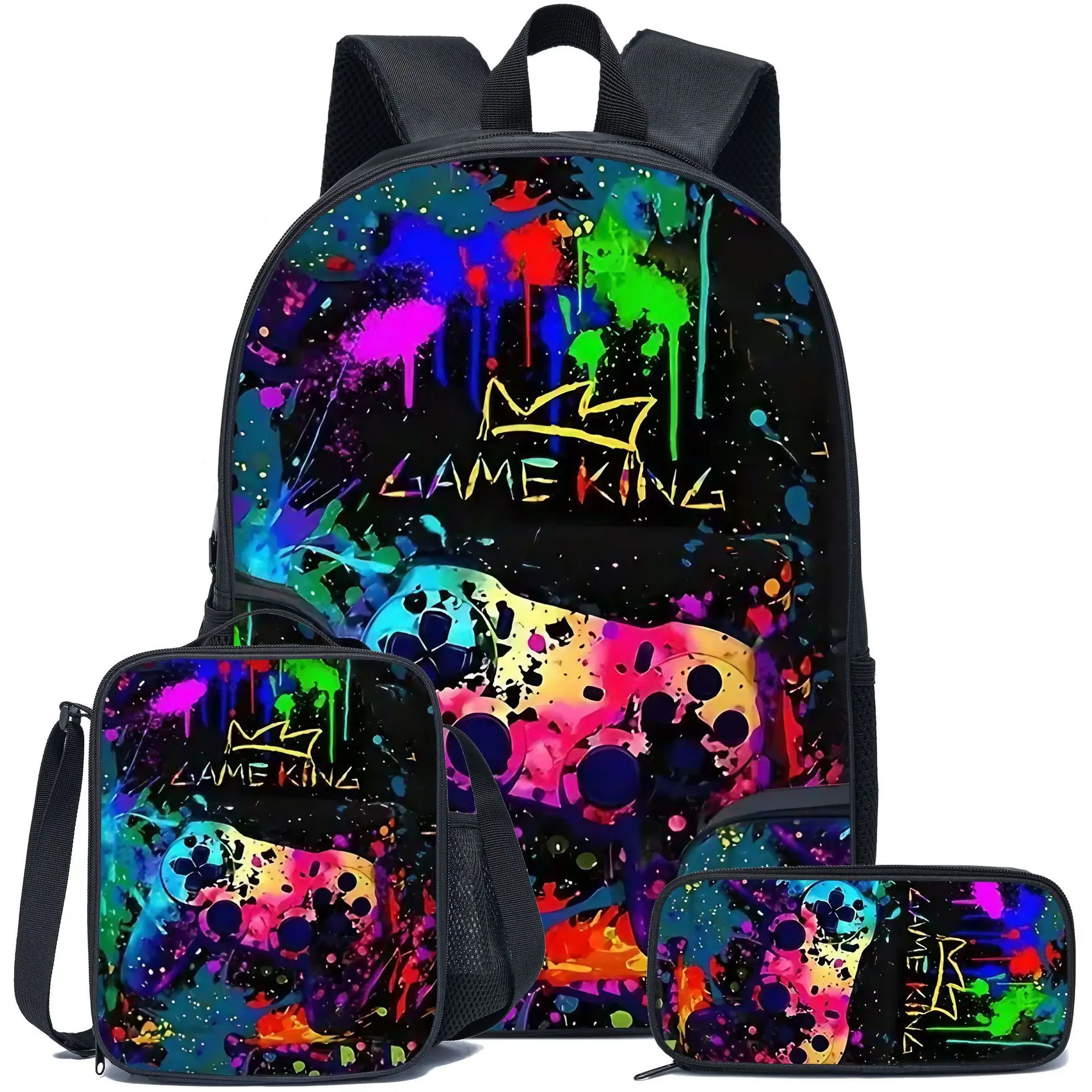 어린이를위한 학교 가방 소년 게임 패드 패턴 배낭 어린이 Satchels 초등학교 1-3 학년 학생 3 조각 세트 배낭 - TopDealBox